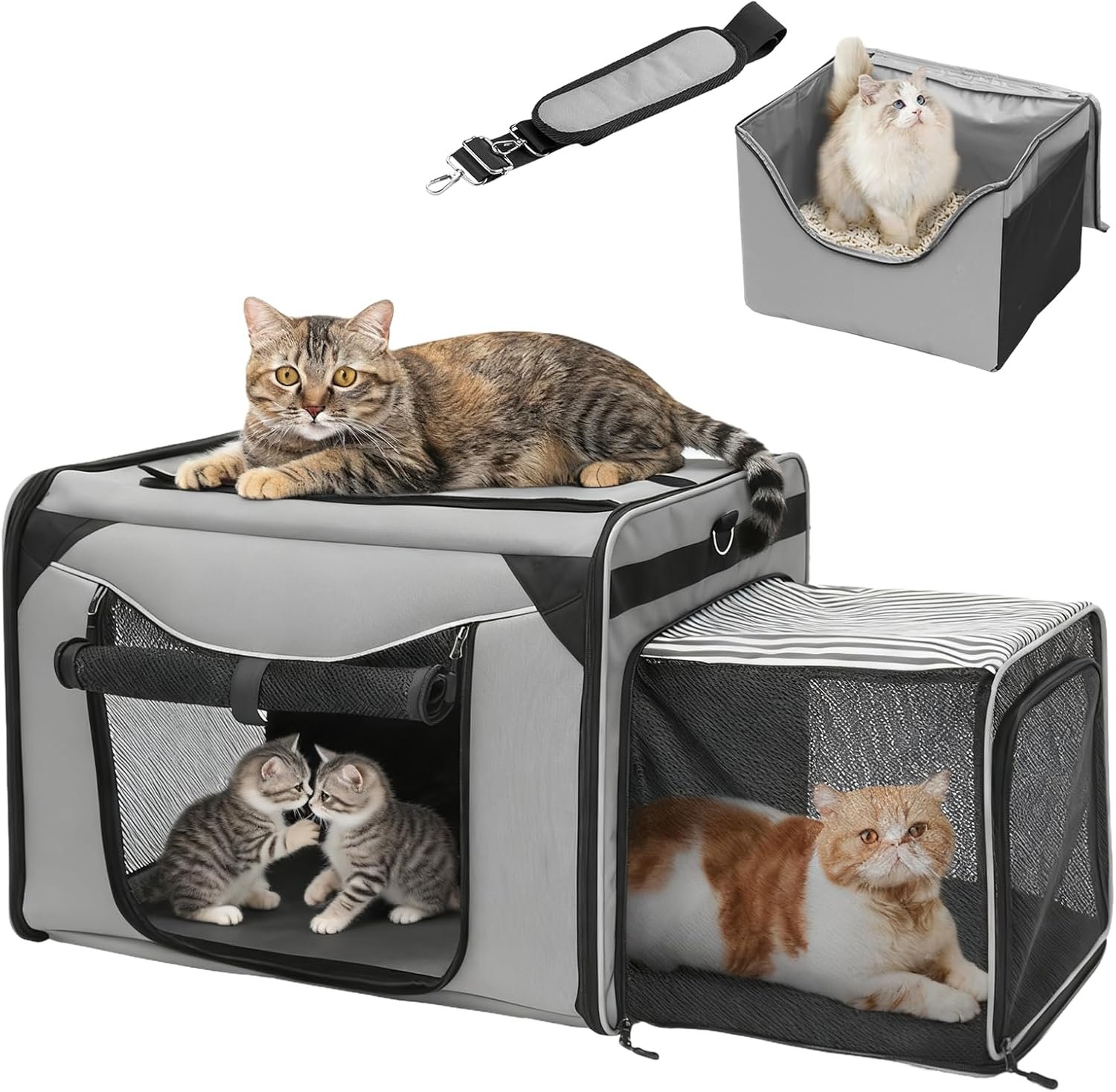 - ✅Large cat carrier with tall-side litter box: The large expandable compartment allows your pets to easily turn around and stretch. Due to the sufficient space, your multipe kittens can lie down comfortably during long journeys. Recommended for pets up to 35lbs